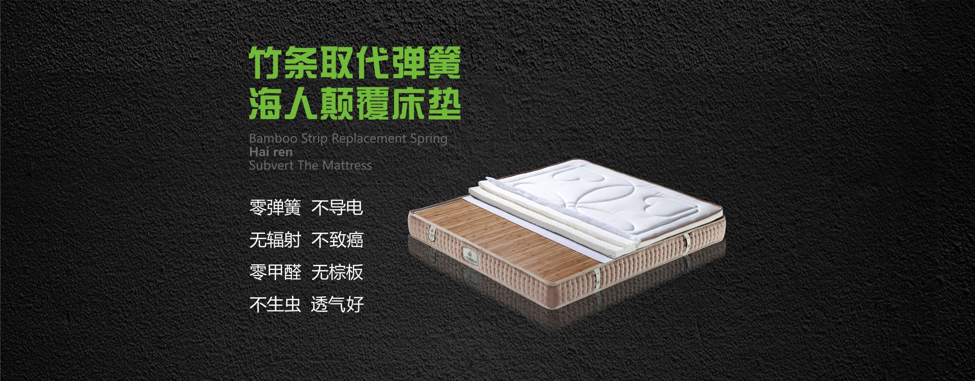 海人竹芯床墊,改變了140多年來(lái)世界床墊基本用鋼絲彈簧做內(nèi)膽的結(jié)構(gòu)工藝,床墊底部為竹條排骨架,克服了彈簧生銹變形的缺陷,解決了棕板容易生蟲的世界難題,是一種取代彈簧床墊棕床墊的新型床墊。。因其獨(dú)具無(wú)簧有彈性、環(huán)保的特色和折疊、拆裝等上樓方便,運(yùn)輸費(fèi)用低的優(yōu)點(diǎn)。